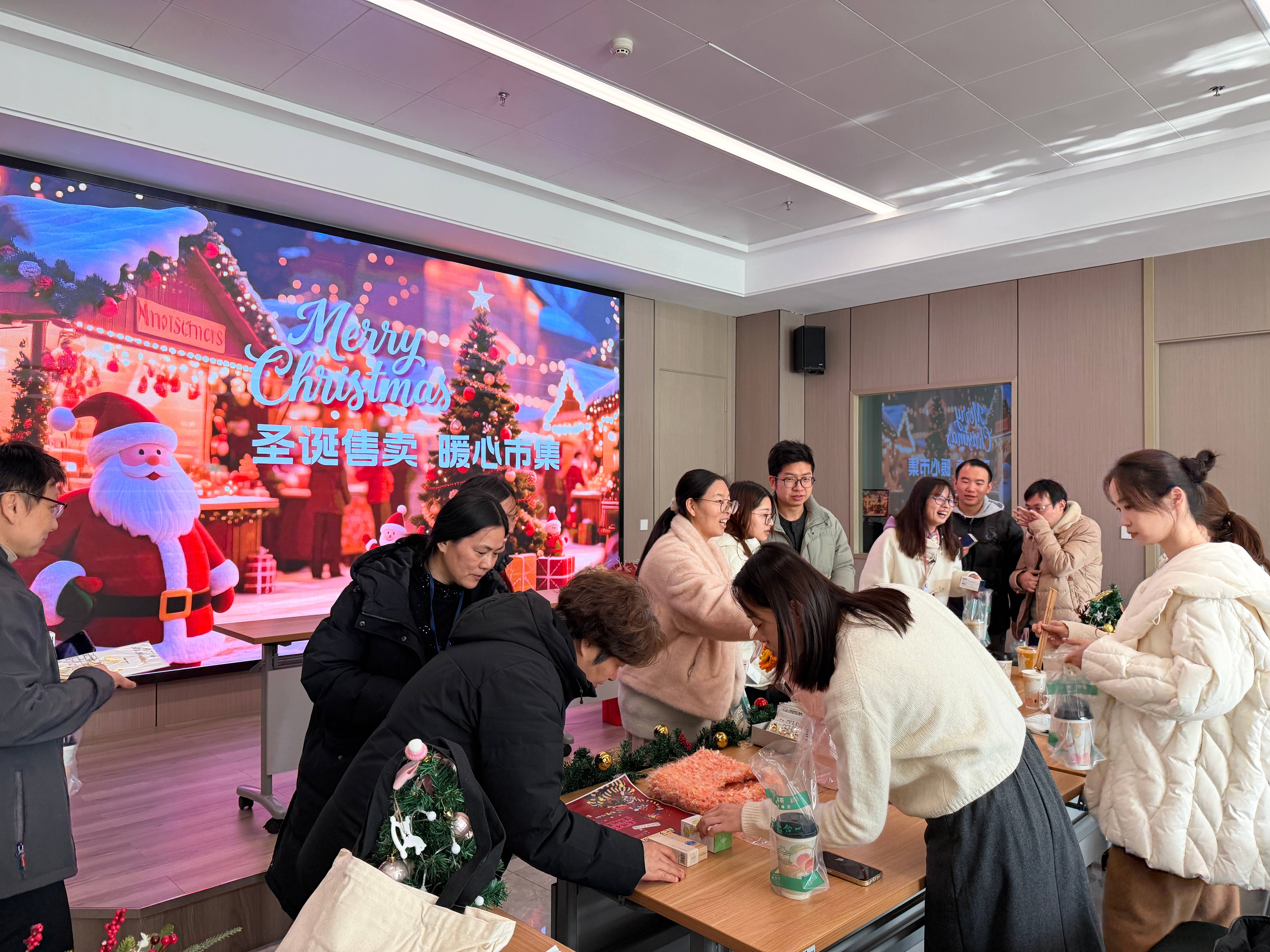 線下暖心市集上,集團總部及各子公司籌備的10個特色攤位整齊陳列,商品種類豐富多元。食品區有氛圍感濃鬱的聖誕主題蛋糕、有香氣撲鼻的暖手奶茶、有種類豐富的水果拚盤,滿足不同味蕾需求;文創區有手工自製的精美掛飾、桌麵擺件等作品巧思滿滿,盡顯員工才藝;xianzhiquyougesewupinhuozhihuanhuodijiazhuanrang,zaipanhuoziyuandetongshi,yeranghaowuyanxulewennuanyujiazhi。huodongzhong,yuangongmensanwujiebanchuansuotanwei,tiaoxuanxinyihaowu、與跨部門及子公司同事熱切交流,在輕鬆氛圍中拉近了距離,讓培訓室成為傳遞溫暖與情誼的紐帶。