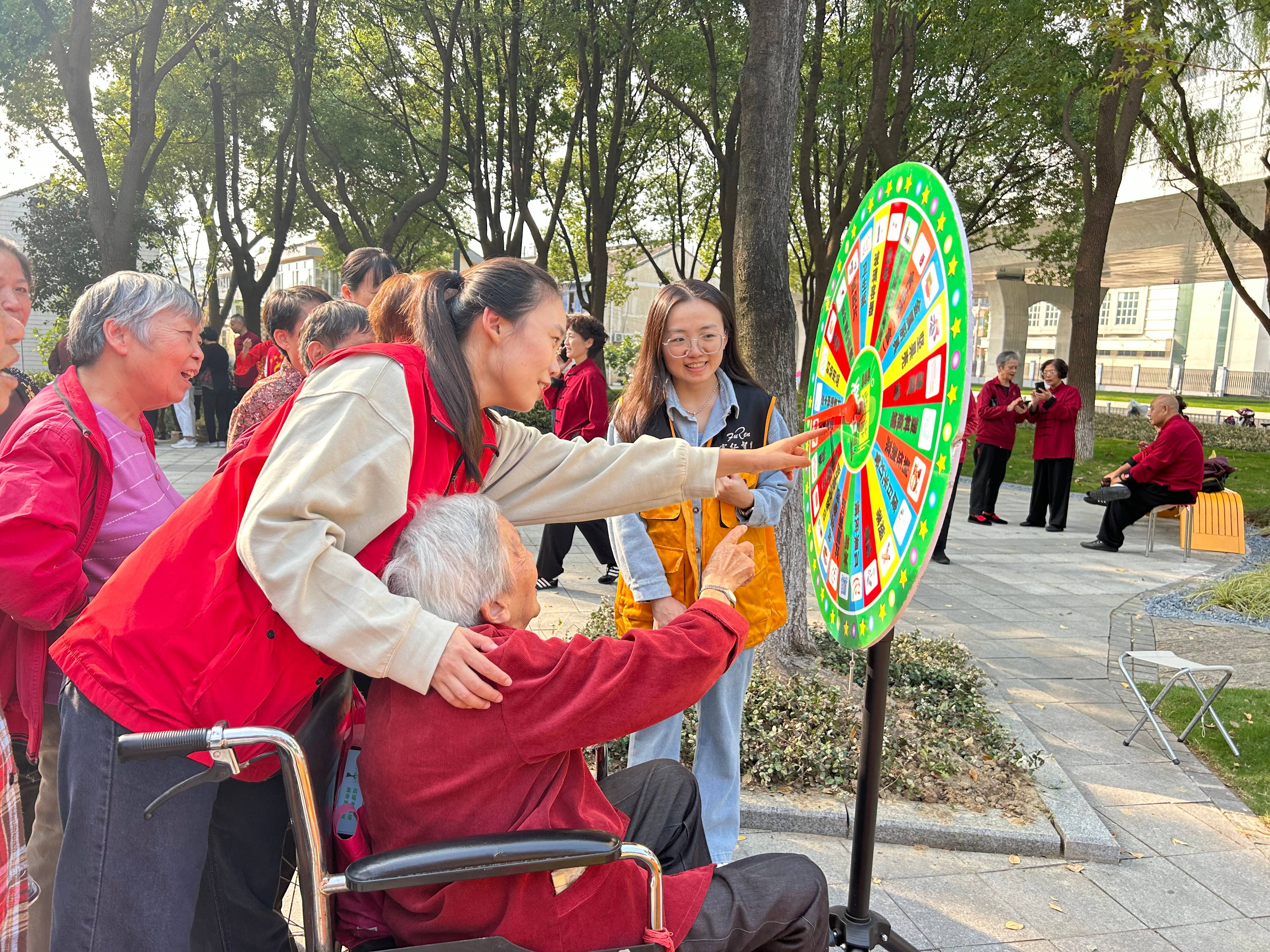 為了增強活動的趣味性,現場也精心設計了遊戲環節,如垃圾分類知識轉盤有獎問答、垃圾分類趣味投遞……通過使用四色桶,讓老年居民在現場進行模擬投放,輕鬆準確“對號入座”的同時也增添了活動樂趣。值得一提的是,澄江路社區的百歲老人也積極參與到學習的隊伍中來,現場氣氛融洽而熱烈。