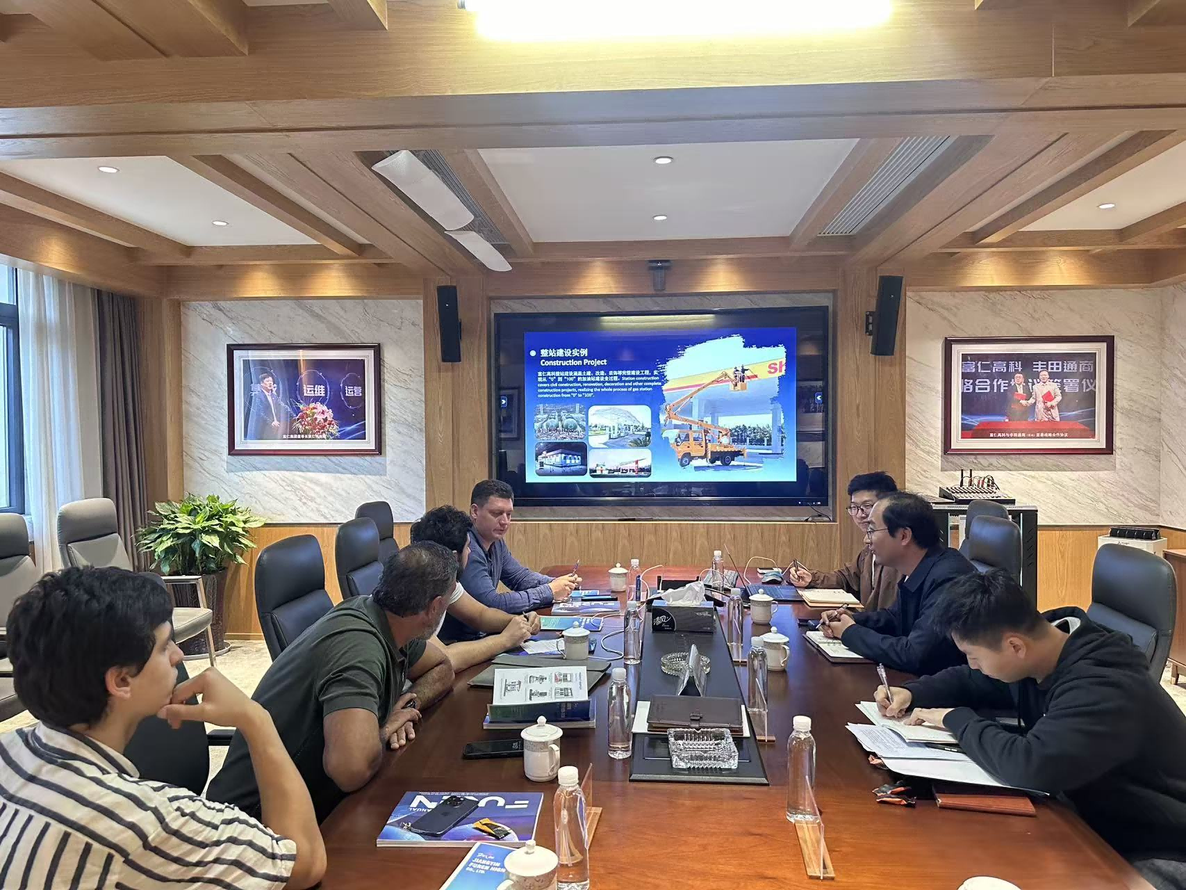 11月10日,一場聚焦加油機器人技術合作的商務會談在富仁高科舉行。來自俄羅斯AZS Control公司的核心代表團,包括總經理Tekhran Obchievich Mamaliev等,與富仁高科機器人組技術副總安凱等成員齊聚,圍繞雙臂AI加油機器人的技術應用、合作路徑及市場落地進行深度磋商,還通過工廠與實地考察為後續合作奠定基礎。