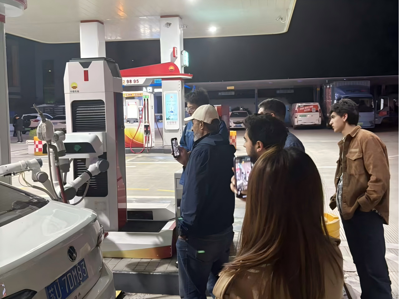 當日晚間,俄方代表團在富仁高科帶領下赴蘇州昆山加油站實地考察,近距離觀摩設備“智能識別車輛→精準定位油槍→自動加注→無感結算”的完整工作狀態。其操作邏輯流暢、作業高效、設計安全,引得俄方成員駐足詢問、拍照記錄。實地考察展現了富仁高科加油機器人技術優勢與實用價值,為後續采購與合作提供支撐。