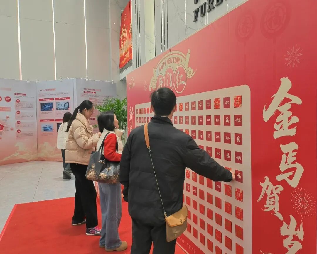 開工日清晨,集團科技大樓內喜氣洋洋,集團精心籌備的開工活動暖意十足。員工踏入大樓即可抽取“開門見喜”紅包,紅包裏滿是新春祝福。現場還擺放著寓意美好的福利:旺仔牛奶象征“福旺財旺”,紅牛寄托“牛氣衝天”,巧克力寓意“生活甜蜜、業績長虹”。大家手捧福利、互道吉祥,快速從“假期模式”切換至“奮鬥模式”,公司的關懷凝聚起同心奮進的強大合力。