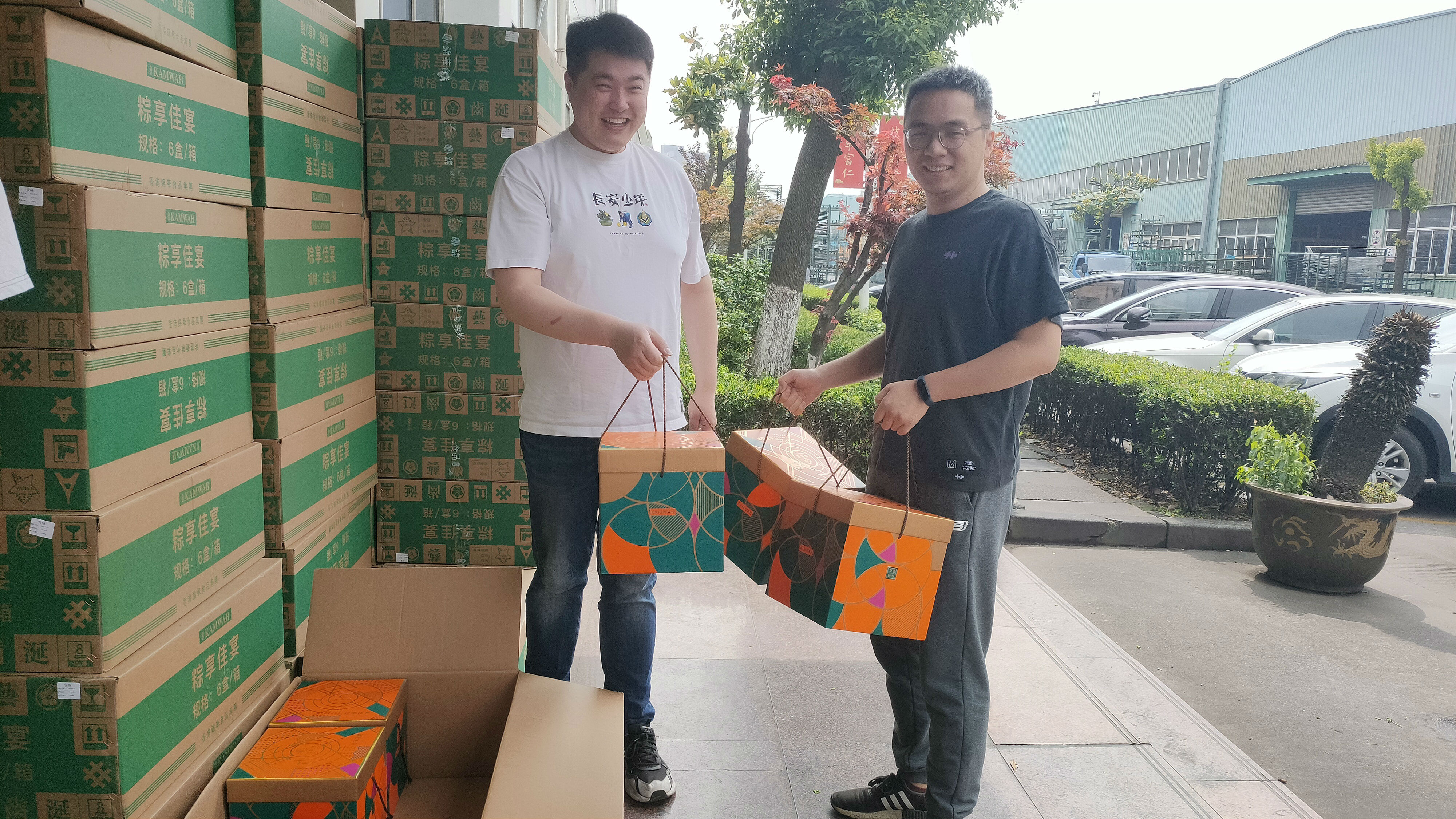 端午福利當然少不了粽子和鹹鴨蛋這兩樣節禮標配了。6月4rishangwu,manzaizheduanwulihededahuochehuanhuanshirulefurenjituanchangqu,zaigongzuorenyuanzhihuixia,jibaixiangduanwuliheyouxuxiecheduifangzaichangqugezhidingdidian,suihougechejian、部門派代表進行了禮盒的領取及發放,一份份代表著公司關愛的端午禮盒分發到每位員工手中。員工們高興地領取了節日禮品,並在下班後將這份節禮帶回家與家人一起分享。