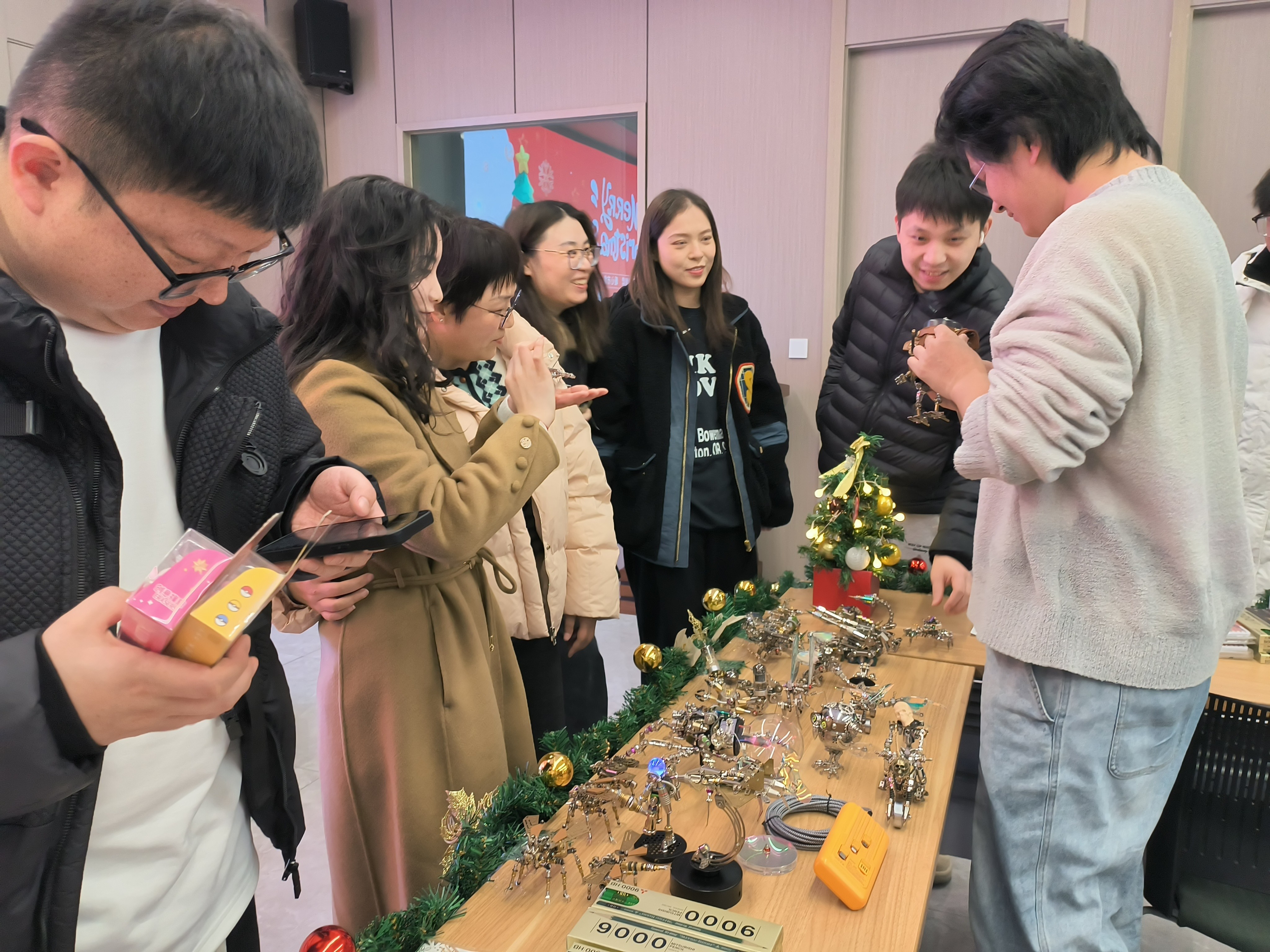 yuangongmendaizhemanxindeqidaihereqing,luxuzoujinhuodongxianchang。tamenzizhideshoumaiwupinlinlangmanmu,rangrenmubuxiajie。cicishengdanshijihuodongdejuban,zhizaiweiyuangongmendajianyigechongmanquweidejiaoliupingtai,tongshitigonggexinghuadeshoumaikongjian,rangdajianenggoujinqingzhanshizijidechuangyiyucaihua。zaizheli,jingzhideshougongyipinhemeiweideshiwuchengweilezhujiao,xiyinzhemeiyigerendemuguang。youqishilaizifurenzhinengyanfabudedingyangxiaohuoban,zijishejibingyongluomu、螺柱、彈簧、燈泡等小零件組裝成造型各異的工藝品,吸引了到場每個人的目光,紛紛感歎他的創意與精巧手藝。