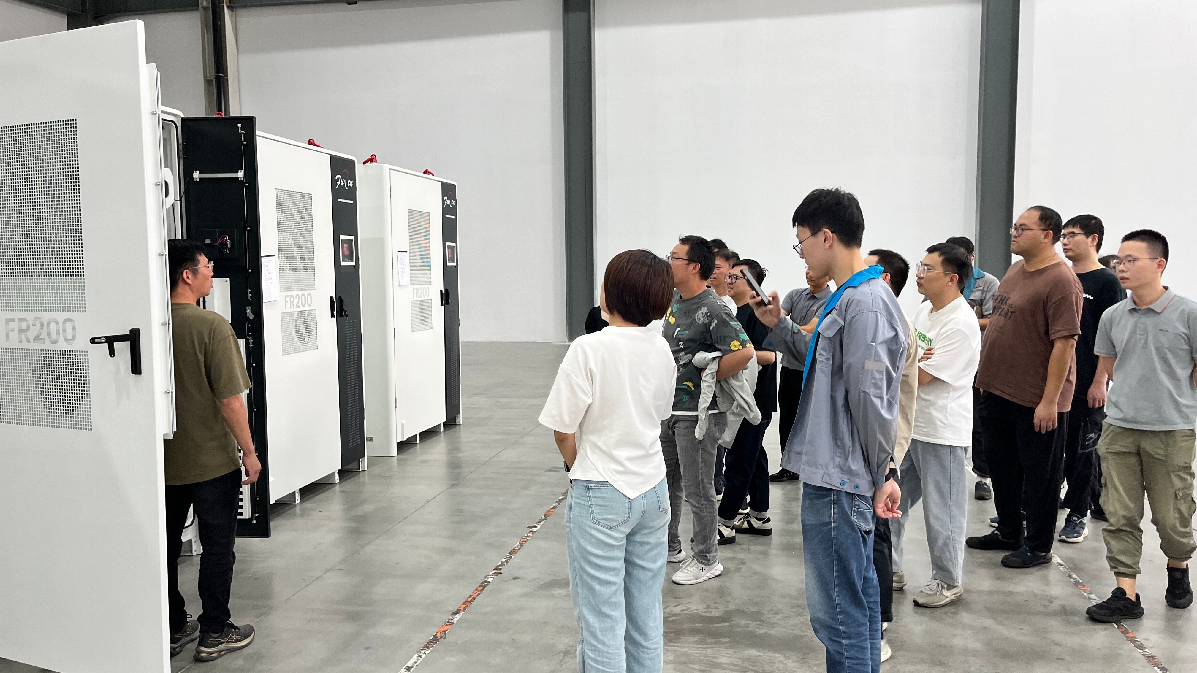 活huo動dong人ren員yuan一yi行xing最zui後hou來lai到dao富fu仁ren能neng源yuan儲chu能neng係xi統tong裝zhuang配pei車che間jian,近jin距ju離li觀guan摩mo了le正zheng在zai進jin行xing裝zhuang配pei的de幾ji款kuan工gong商shang業ye儲chu能neng產chan品pin,通tong過guo電dian池chi艙cang內nei部bu結jie構gou的de講jiang解jie,了le解jie我wo司si核he心xin技ji術shu。